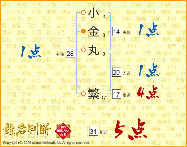 小金丸繁さんの総運は31画の5点!