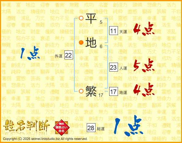平地繁さんの地運は17画の4点!
