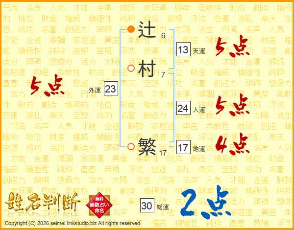 辻(6画)村(7画) 繁(17画)