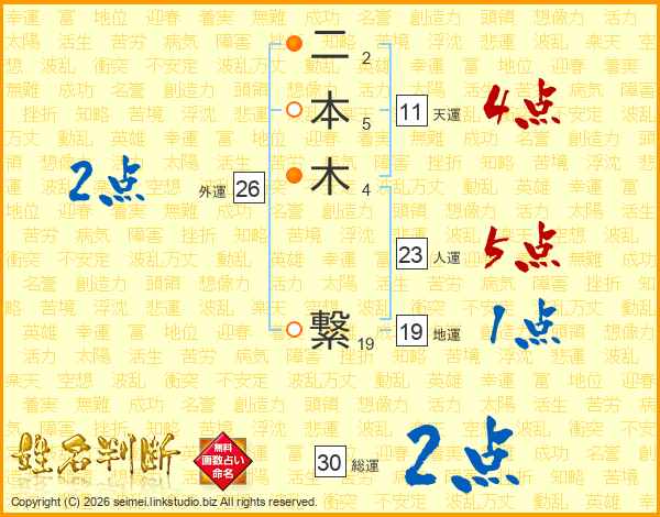 二本木繋さんの天運は11画の4点!