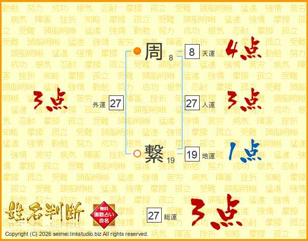 周繋さんの総運は27画の3点!