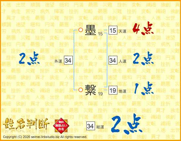 墨繋さんの人運は34画の2点!