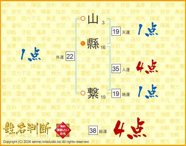 山縣繋さんの総運は38画の4点!