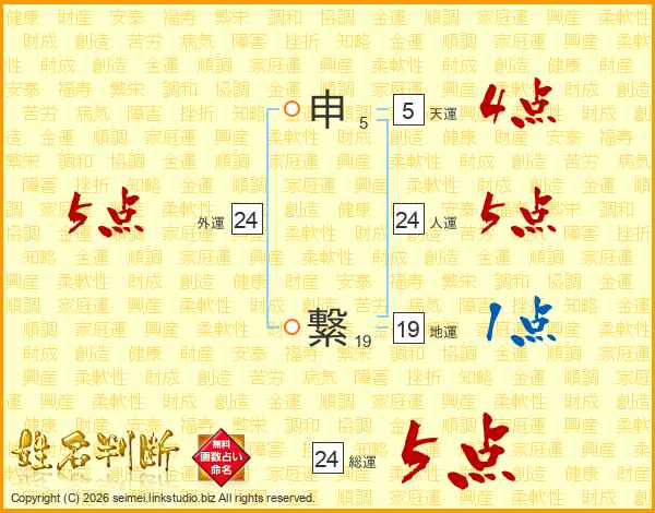 申繋さんの総運は24画の5点!