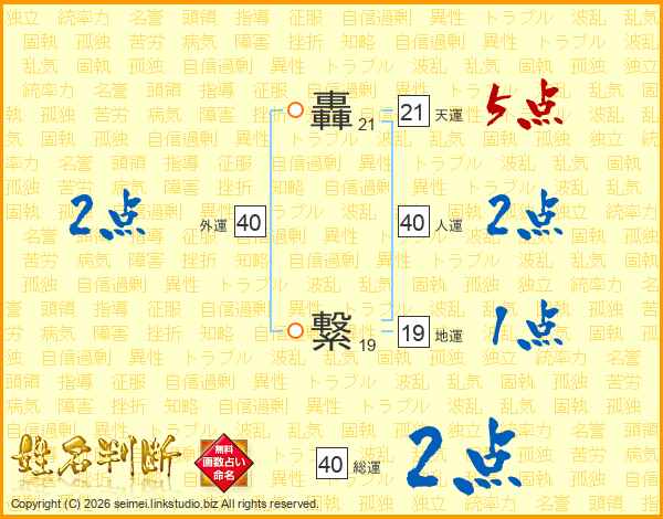 轟繋さんの人運は40画の2点