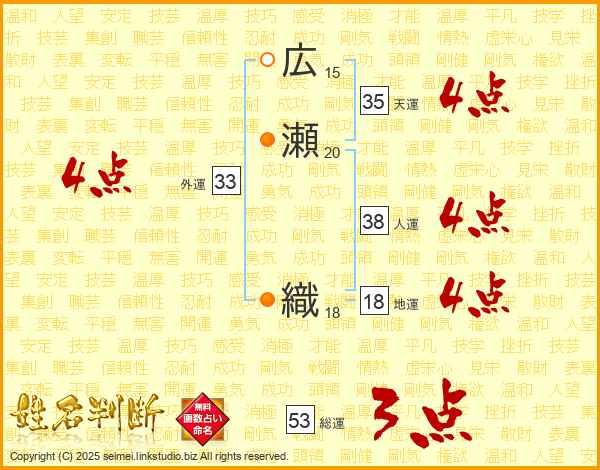 広瀬織さんの外運は33画の4点!