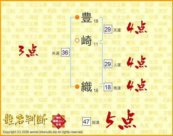 豊崎織さんの総運は47画の5点!