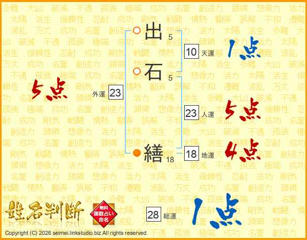 出石繕さんの総運は28画の1点!