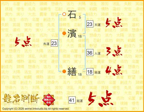 石濱繕さんの天運は23画の5点!