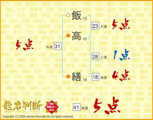 飯高繕さんの総運は41画の5点!
