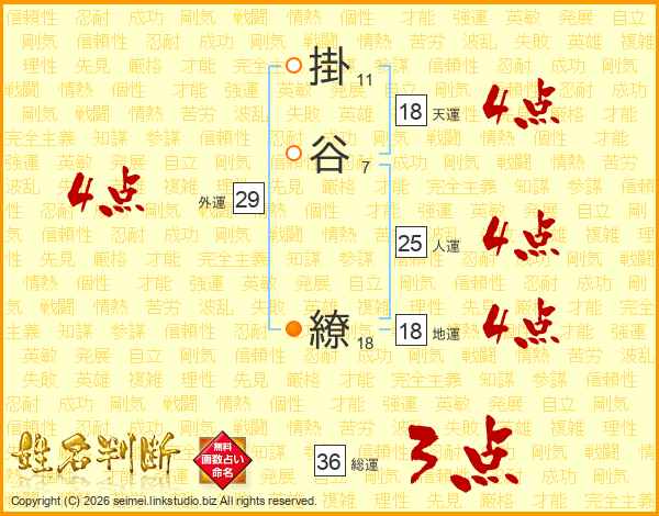 掛谷繚さんの総運は36画の3点!