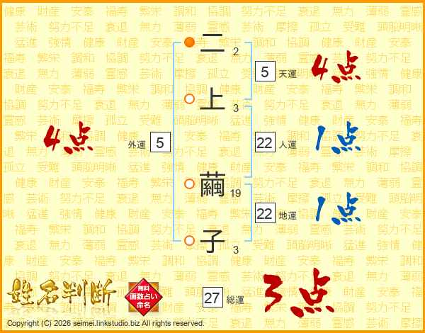 二上繭子さんの総運は27画の3点!