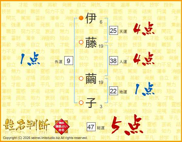 伊藤繭子さんの総運は47画の5点!