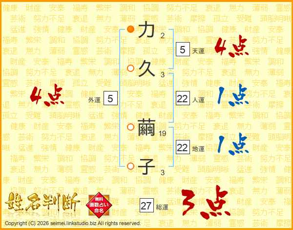 力(2画)久(3画) 繭(19画)子(3画)
