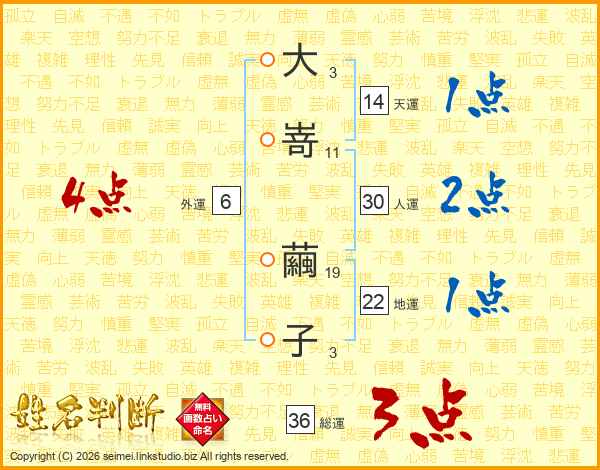 大(3画)嵜(11画) 繭(19画)子(3画)