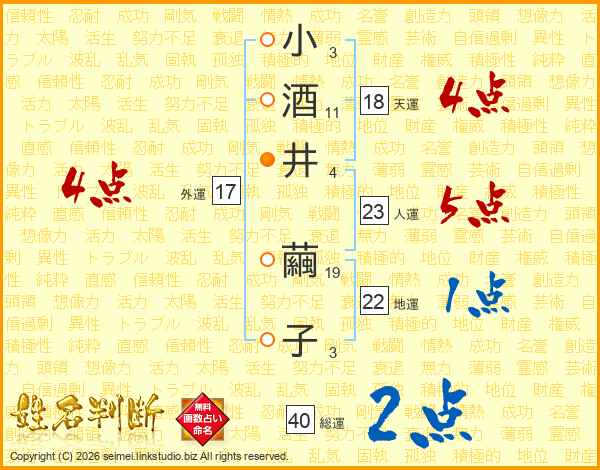小(3画)酒(11画)井(4画) 繭(19画)子(3画)