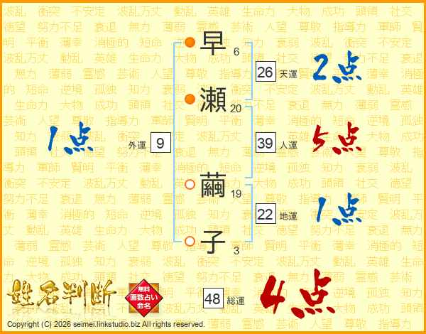早瀬繭子さんの総運は48画の4点!