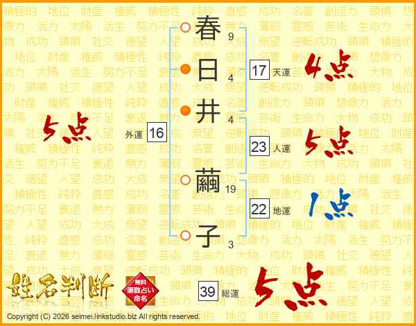 春(9画)日(4画)井(4画) 繭(19画)子(3画)