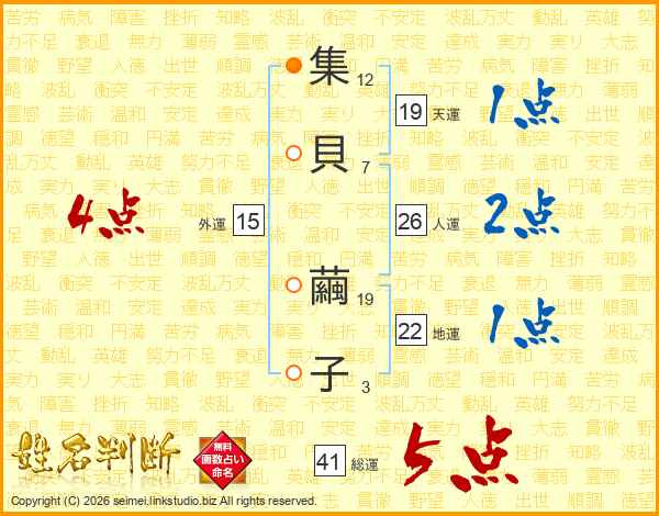 集貝繭子さんの総運は41画の5点!