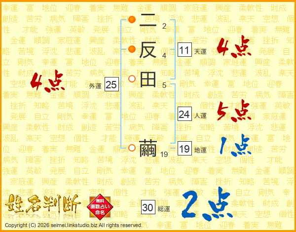 二反田繭さんの天運は11画の4点!