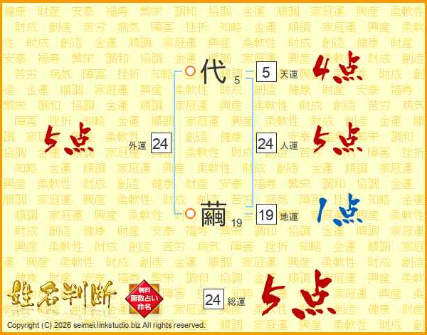 代繭さんの総運は24画の5点!