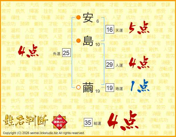 安(6画)島(10画) 繭(19画)