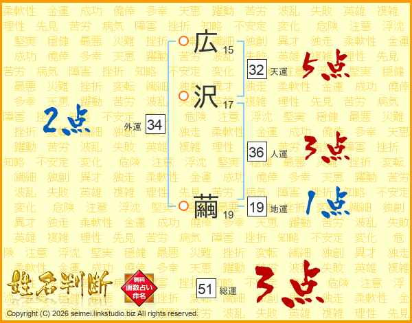 広沢繭さんの総運は51画の3点!