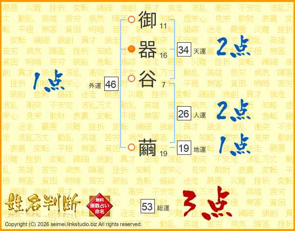 御器谷繭さんの人運は26画の2点!