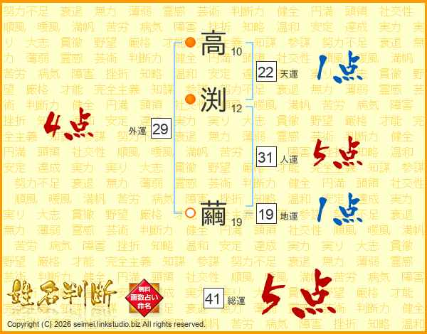 高渕繭さんの総運は41画の5点!