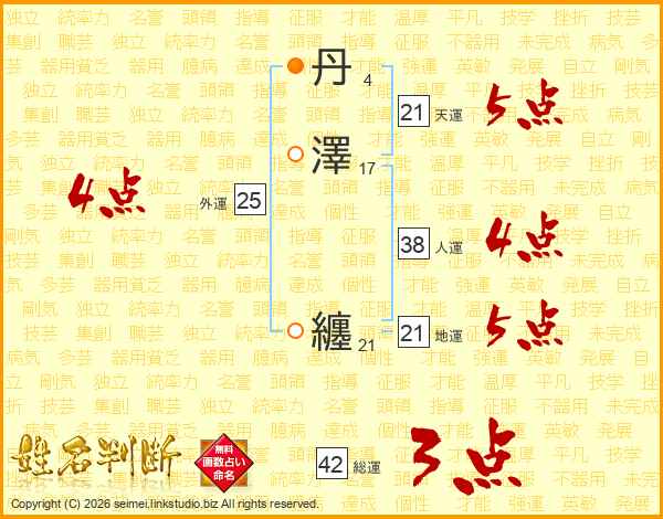 丹澤纏さんの天運は21画の5点!