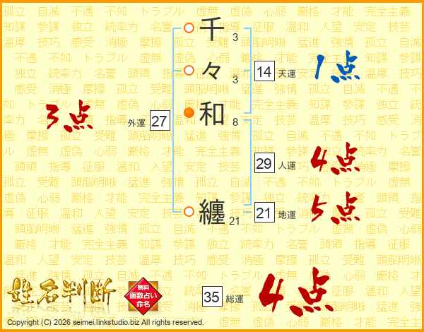 千々和纏さんの総運は35画の4点!