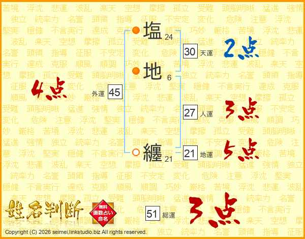 塩地纏さんの総運は51画の3点!