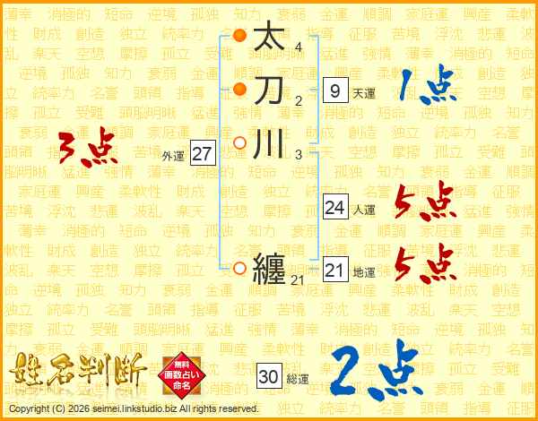 太刀川纏さんの総運は30画の2点!