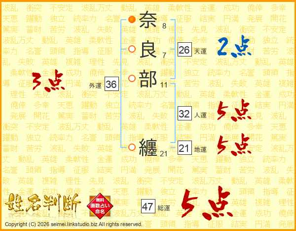 奈良部纏さんの総運は47画の5点!