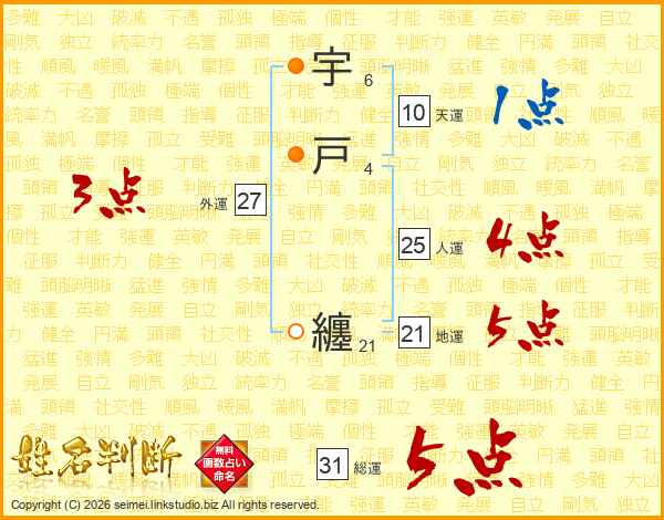 宇戸纏さんの総運は31画の5点!