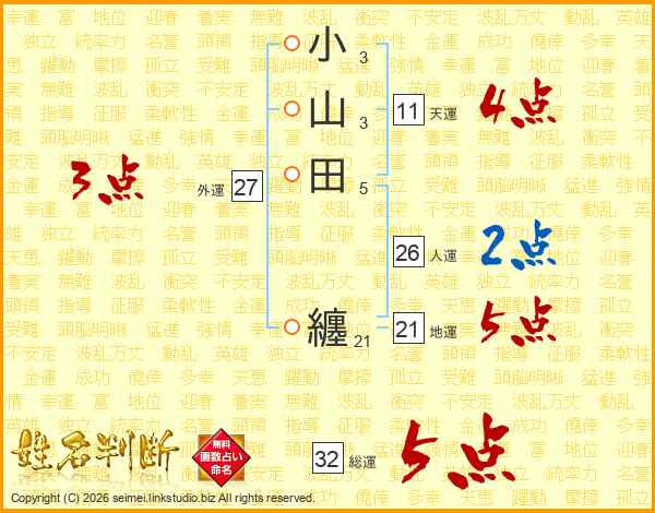 小山田纏さんの総運は32画の5点!