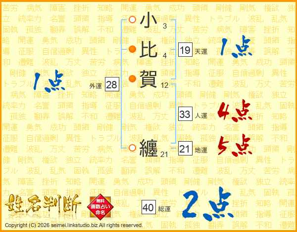 小(3画)比(4画)賀(12画) 纏(21画)