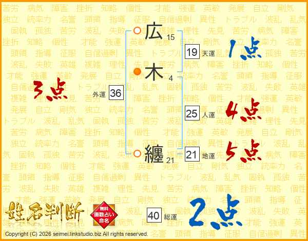 広木纏さんの総運は40画の2点