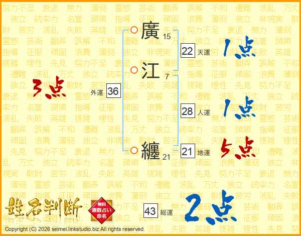 廣江纏さんの総運は43画の2点!