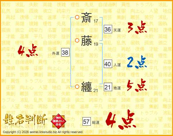 斎藤纏さんの総運は57画の4点!