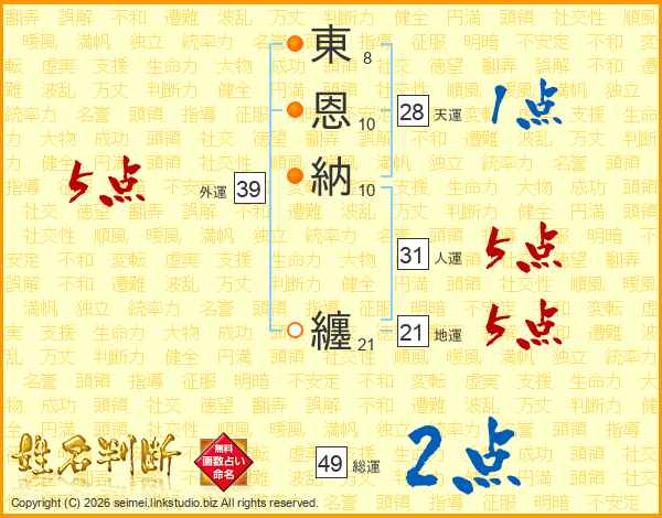東恩納纏さんの外運は39画の5点!