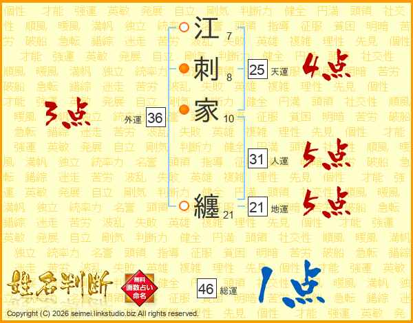 江刺家纏さんの総運は46画の1点!