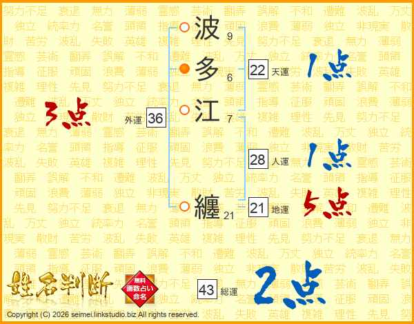 波多江纏さんの総運は43画の2点!