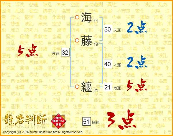 海藤纏さんの総運は51画の3点!