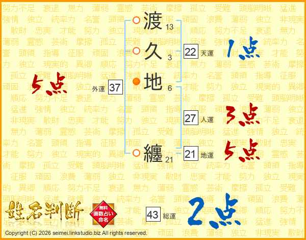 渡久地纏さんの総運は43画の2点!