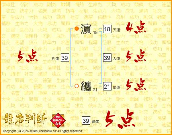 濵纏さんの人運は39画の5点!