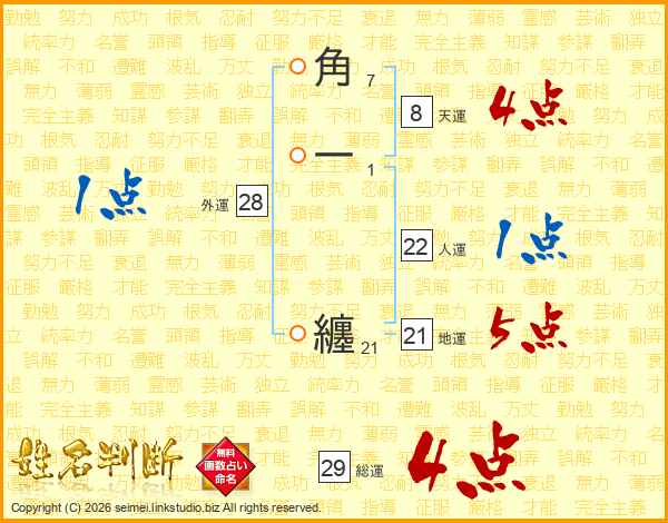 角一纏さんの総運は29画の4点!