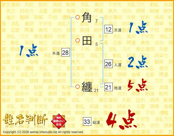 角田纏さんの総運は33画の4点!