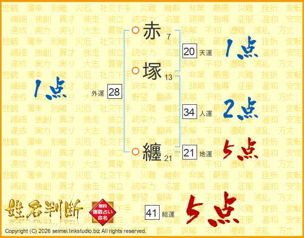 赤塚纏さんの総運は41画の5点!