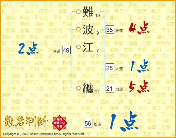 難波江纏さんの総運は56画の1点!